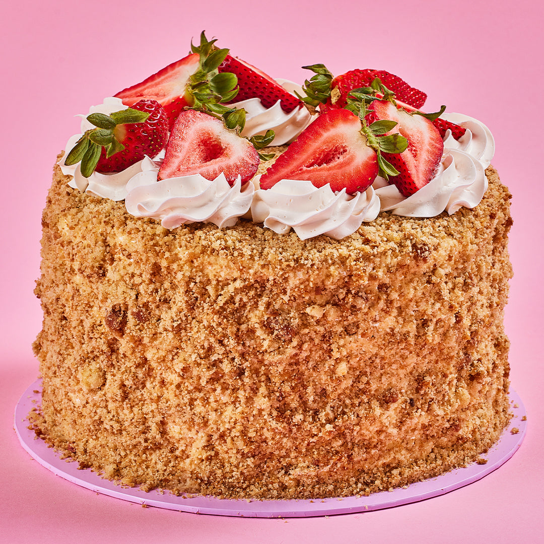 VANILLA CAKE FILLED WITH DIPLOMATIC CREAM AND STRAWBERRIES.